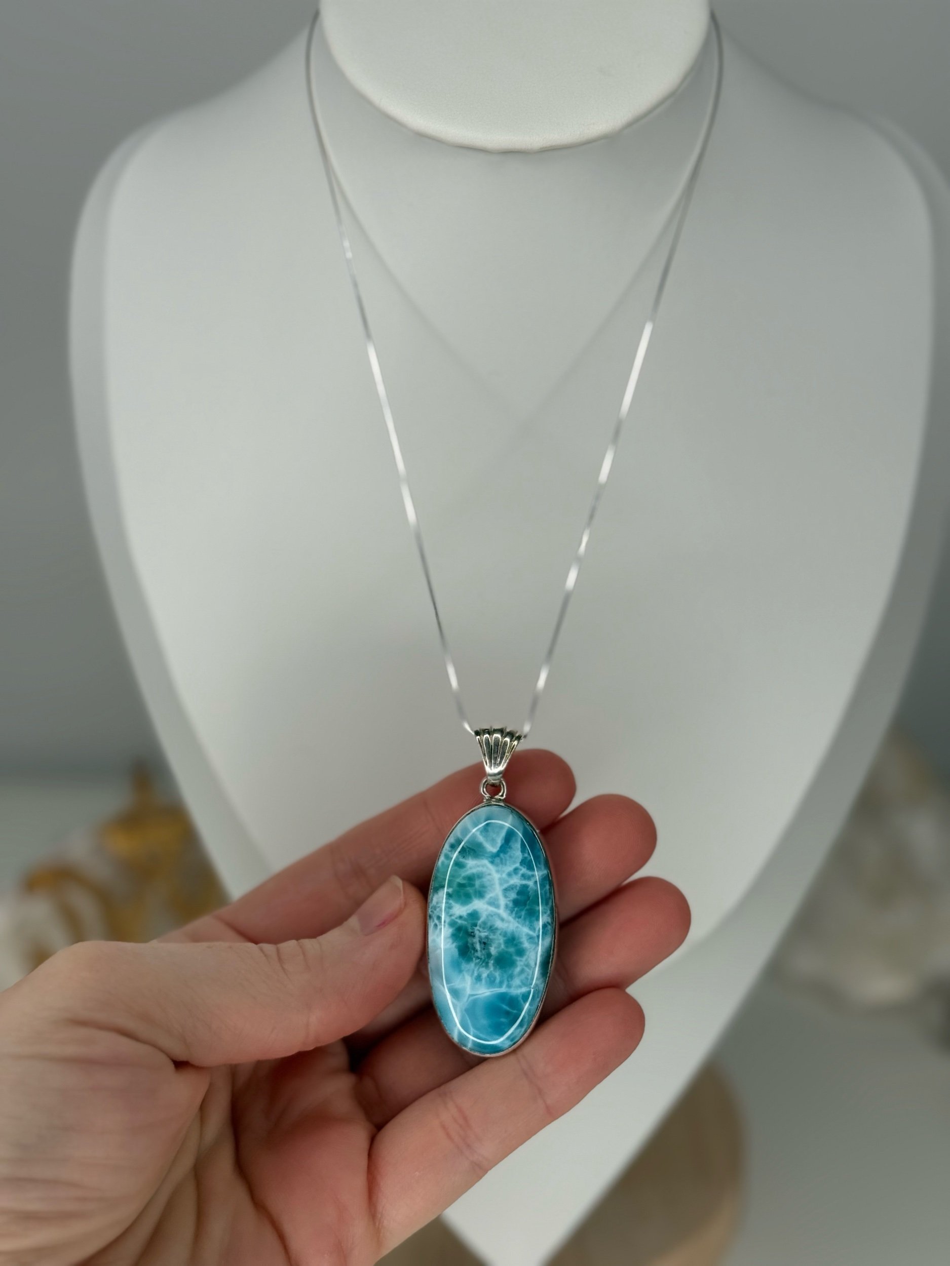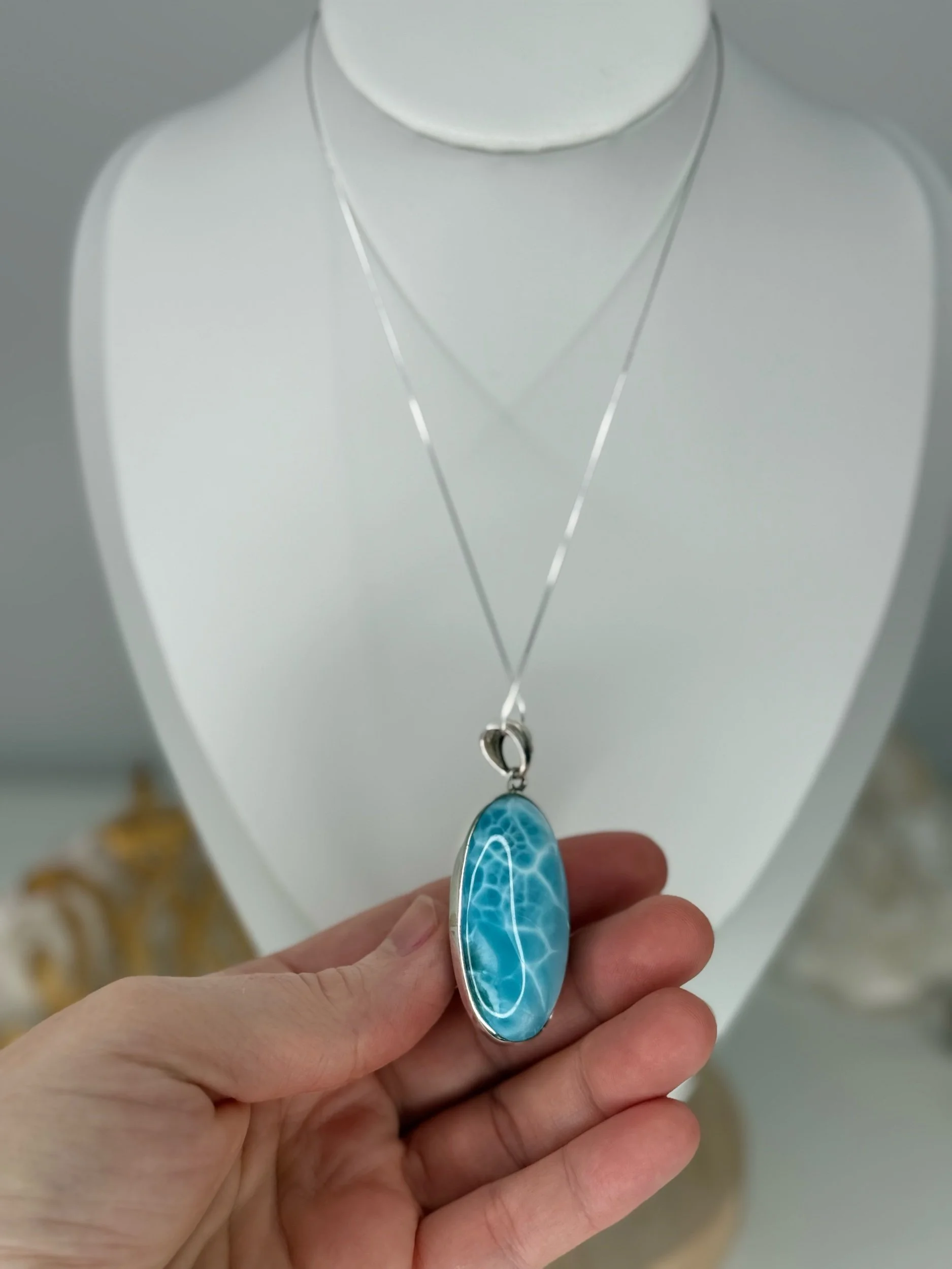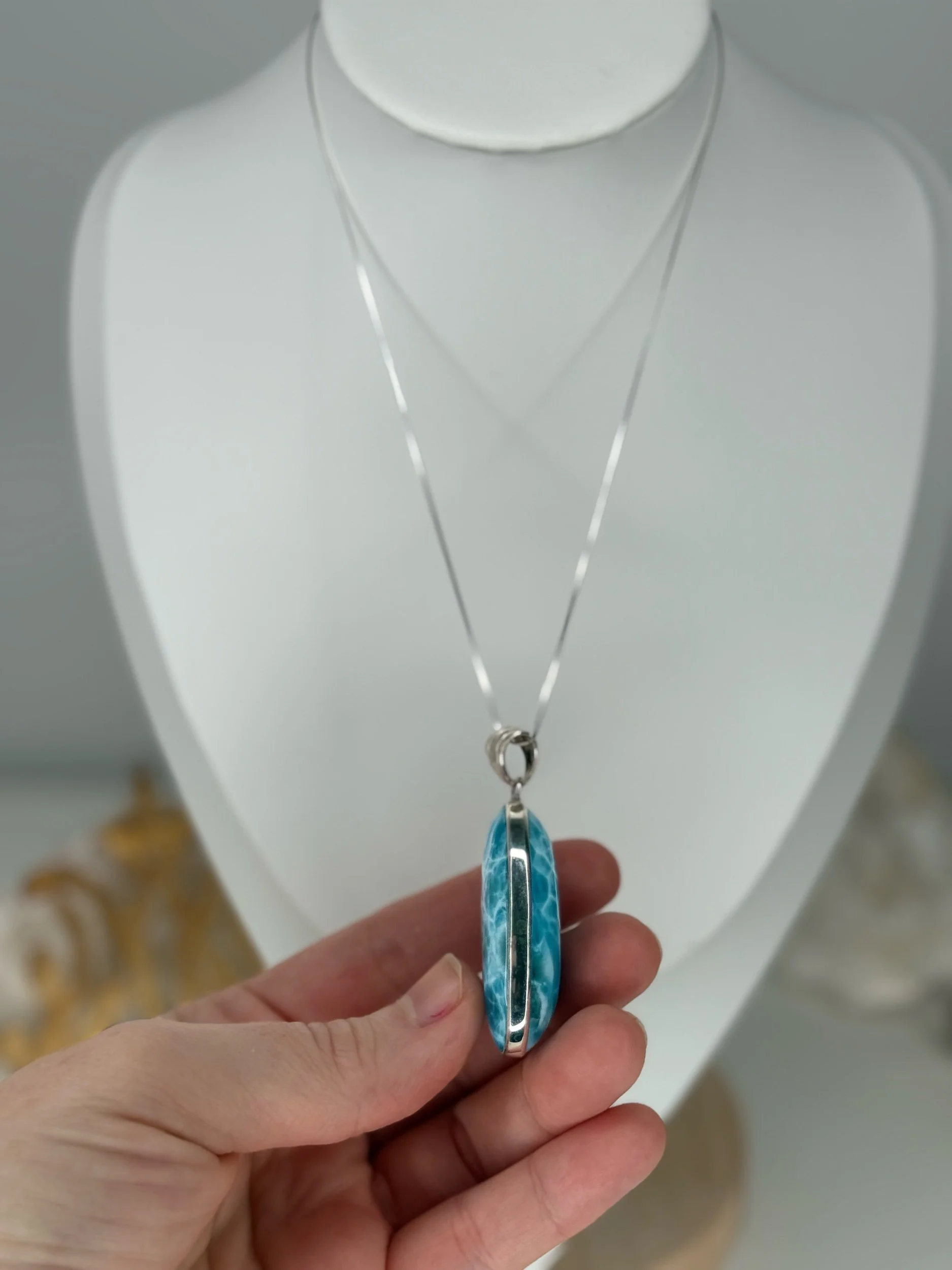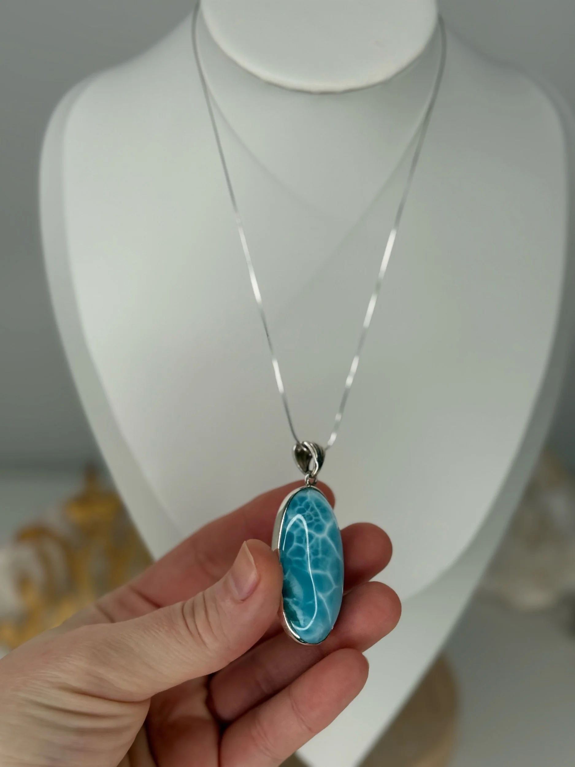 Crystals, gemstones, Larimar shop › Oval, double sided Larimar pendant Image 1 of 7 Image 2 of 7 Image 3 of 7 Image 4 of 7 Image 5 of 7 Image 6 of 7 Image 7 of 7 Oval, double sided Larimar pendant €179.00 Purchase Added! Reviews Reviewer Name Review Date Star Rating Description Posted on Etsy Product Show More