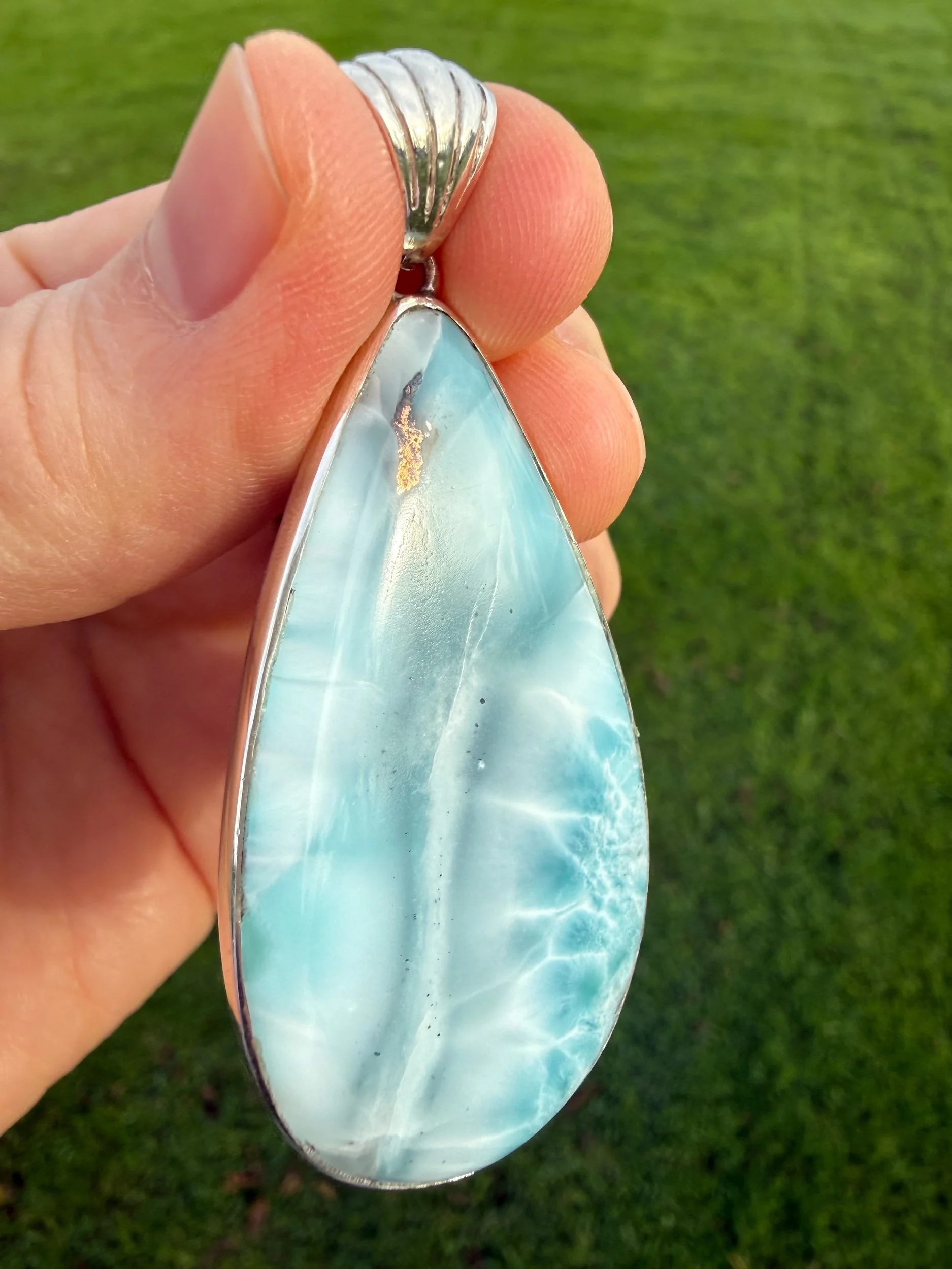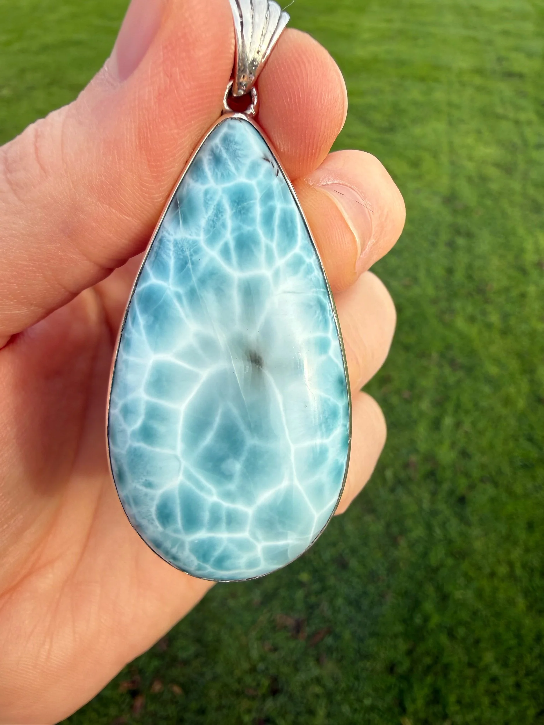 Crystals, gemstones, Larimar shop › Double sided Larimar pendant Image 1 of 5 Image 2 of 5 Image 3 of 5 Image 4 of 5 Image 5 of 5 Double sided Larimar pendant €225.00 With shiny copper inclusion Purchase Added! With shiny copper inclusion Reviews Reviewer Name Review Date Star Rating Description Posted on Etsy Product Show More