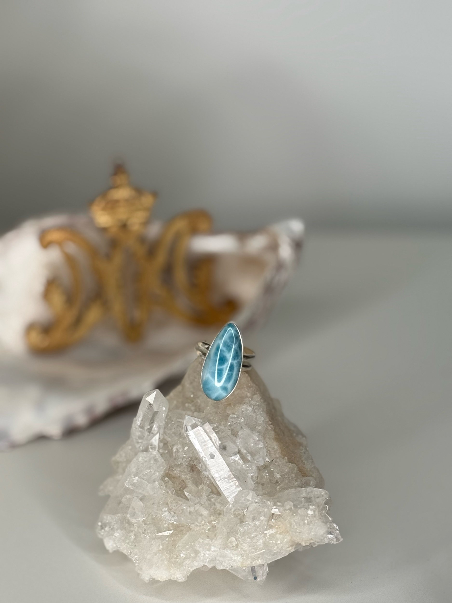 Crystals, gemstones, Larimar shop › Larimar sterling silver ring Image 1 of 2 Image 2 of 2 Larimar sterling silver ring €60.00 Sold Out Sold Out Added! Reviews Reviewer Name Review Date Star Rating Description Posted on Etsy Product Show More